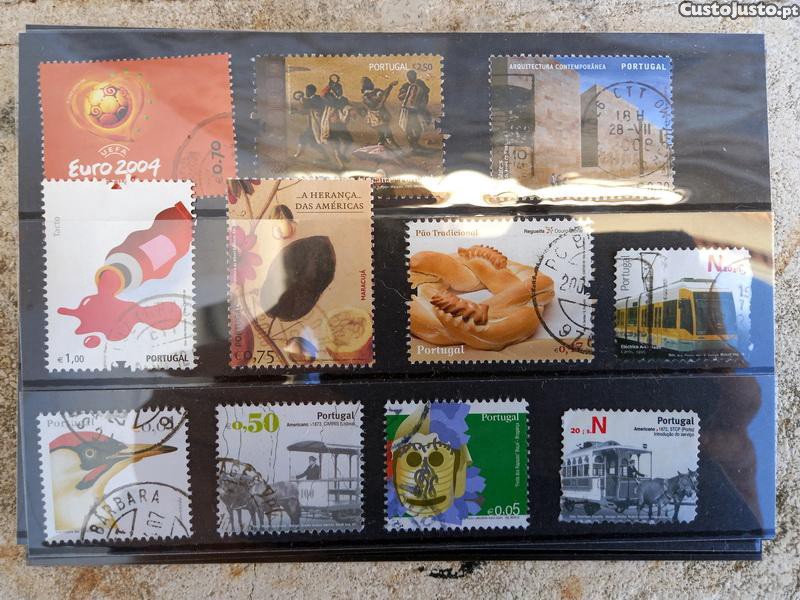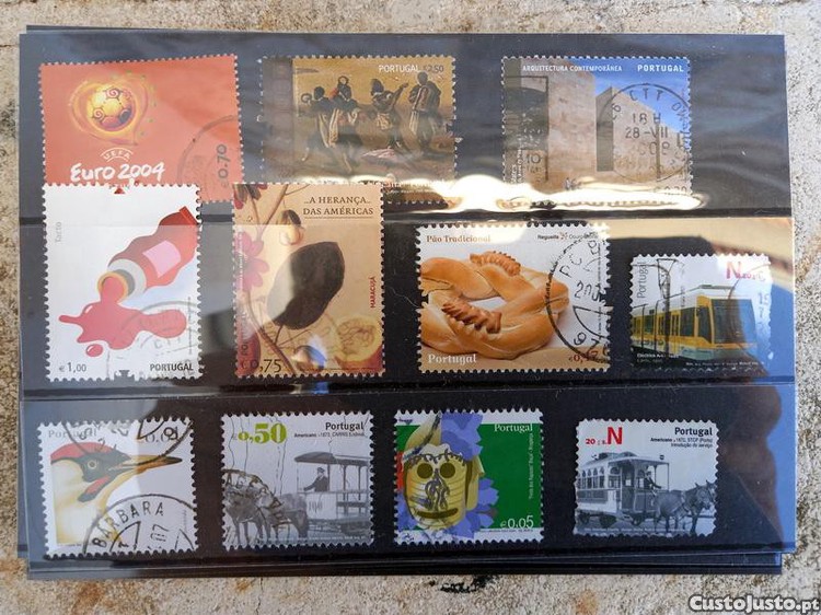 Vendo carteira com 11 selos usados de Portugal Continental. Valores em Euros. Diferentes anos, diversas colecções e diversos valores. Entrego em mão em Loures ou possibilidade de envio por CTT com portes a cargo do comprador. Contacto preferencial por t/m. Artigo disponível enquanto activo o anúncio