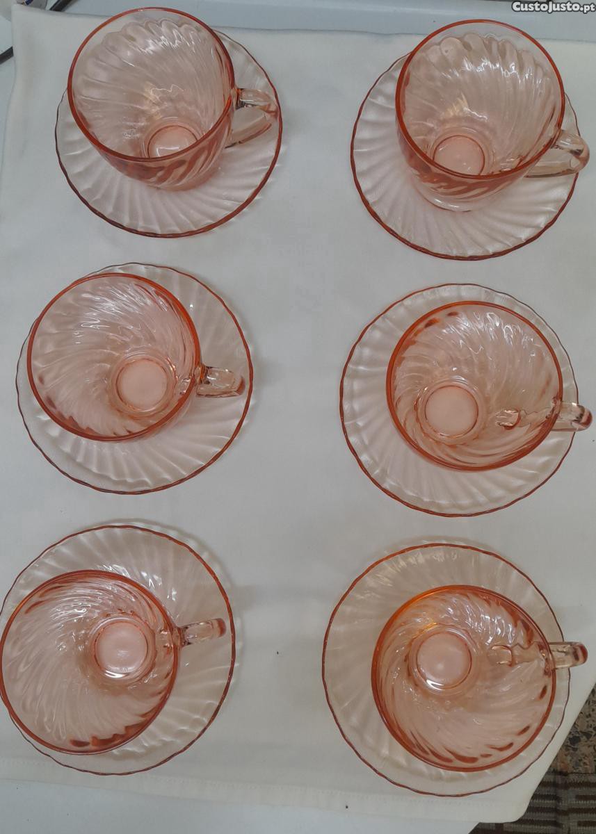 Conjunto de 6 chávenas com os respectivos 6 pratos da Arcoroc France, para pequeno almoço.