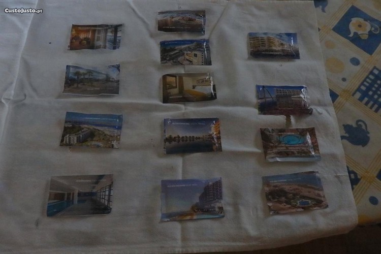 São 13 pacotes cheios de açúcar, todos diferentes, dos hotéis Vila Galé.