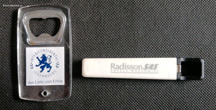 Preço: 5 €2 abridores com a publicidade dos Hotéis Raddison SAS e ao Intercontinental Luxembourg