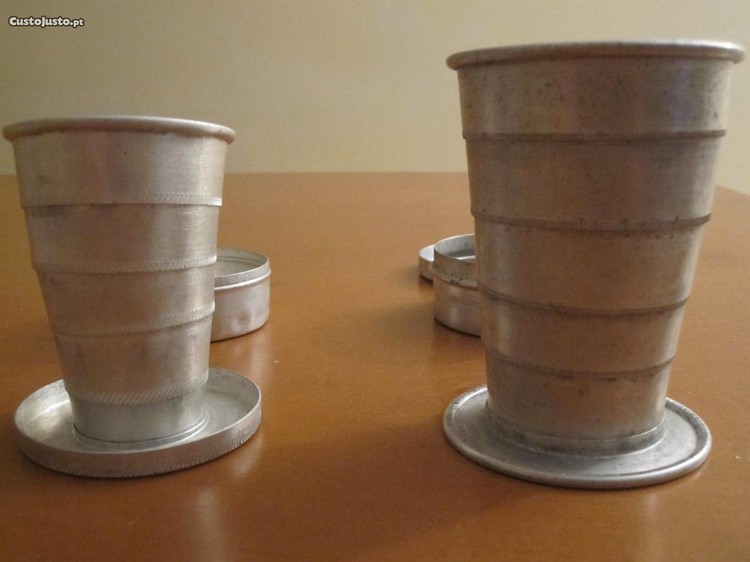 Copos antigos que eram para utilizar em transporte dentro da mala por ex. dado que encolhem e ficam dentro da caixa de alumínio