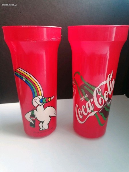 Preço: 9 €2 copos em plástico com publicidade da Coca-Cola, Expo 92 Sevilha e Coca Cola garrafa