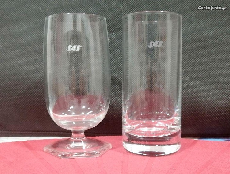 Preço: 10 €2 copos vidro com gravação do símbolo da Companhia aérea Escandinava, SAS