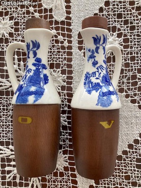 Preço: 30 €2 Galhetas antigas para galheteiro, aplicações em madeira e porcelana