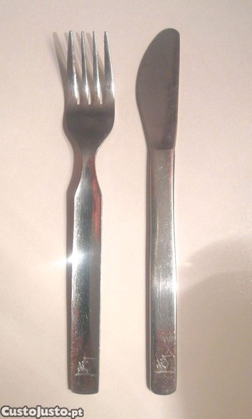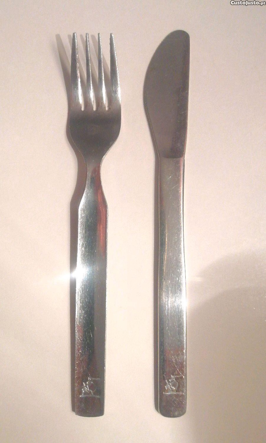 2 talheres inox faca e garfo com gravação símbolo navigator class Companhia Aérea Portuguesa TAP