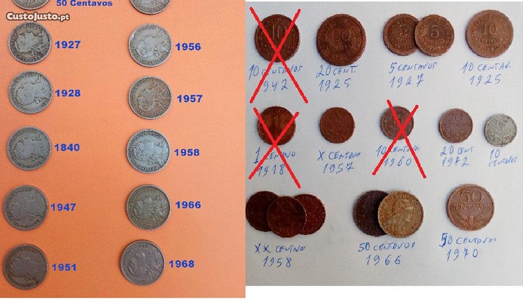 Moedas 50 Centavos 1927, 1928, 1940, 1947, 1951, 1953, 1956, etc.