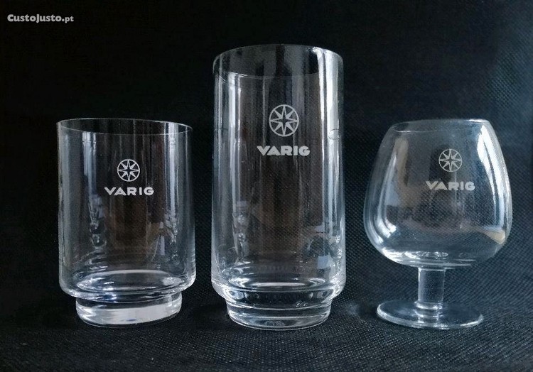 Preço: 12 €3 copos em vidro da Companhia aérea Brasileira VARIG