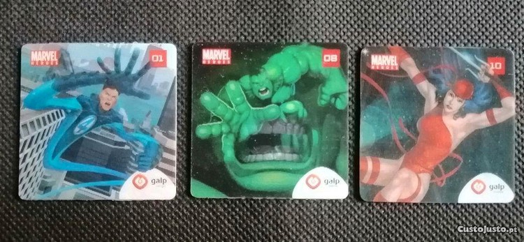 3 heroe tazos da Marvel com edição da Galp.