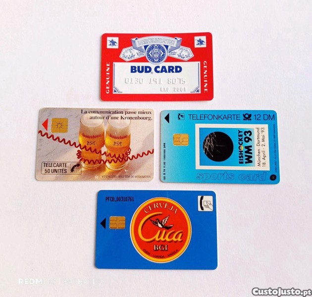 Preço: 25 €4 cartões com publicidade a marcas de cerveja, sendo 3 cartões telefónicos e 1 Bud Card