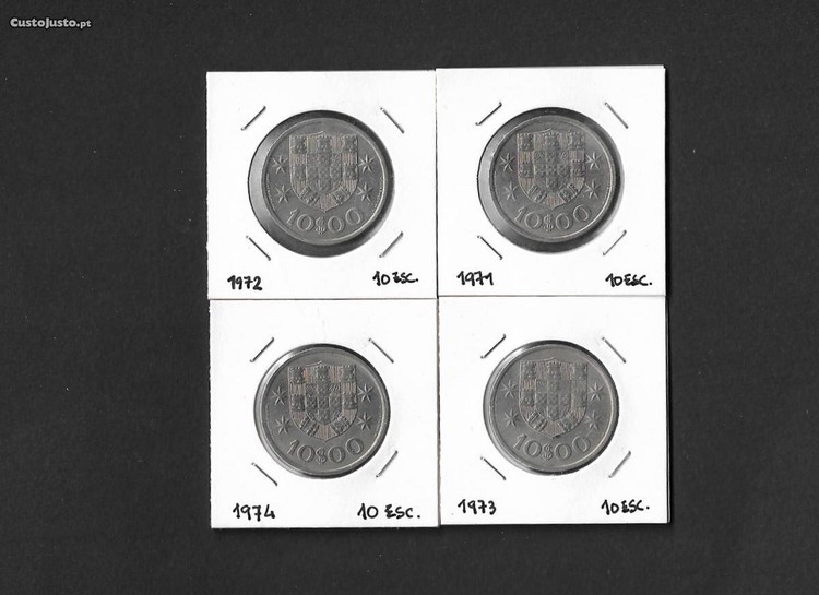 4 moedas de 10 escudos. Portugal 1971/72/73 e 74