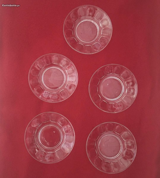 5 pratos / pires de vidro trabalhados