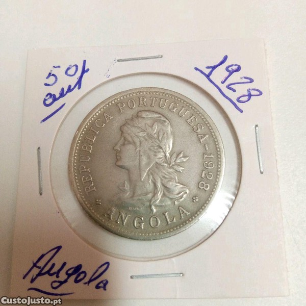 Moeda de 50 centavos 1928 em níquel de Angola em estado de conservação MBC só se aceita pagamento por T B