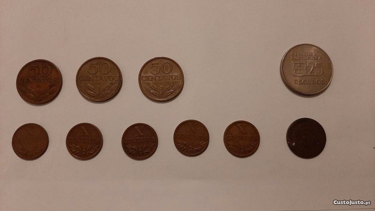 Preço: 1 €50 centavos, X Centavos, 5 Centavos, 25 Escudos
