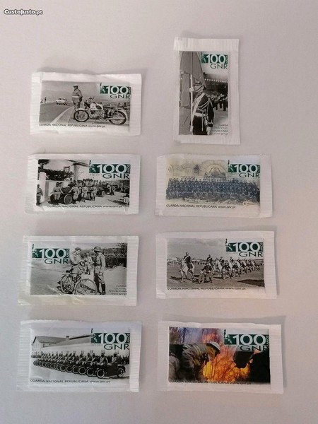 8 pacotes de açúcar da colecção de 10 pacotes dos 100 anos da GNR 1911-2011.