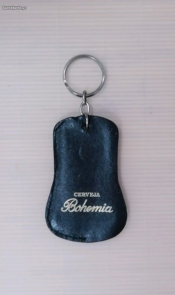 Abre cápsulas em metal com a publicidade da marca da cerveja Portuguesa, Bohemia.