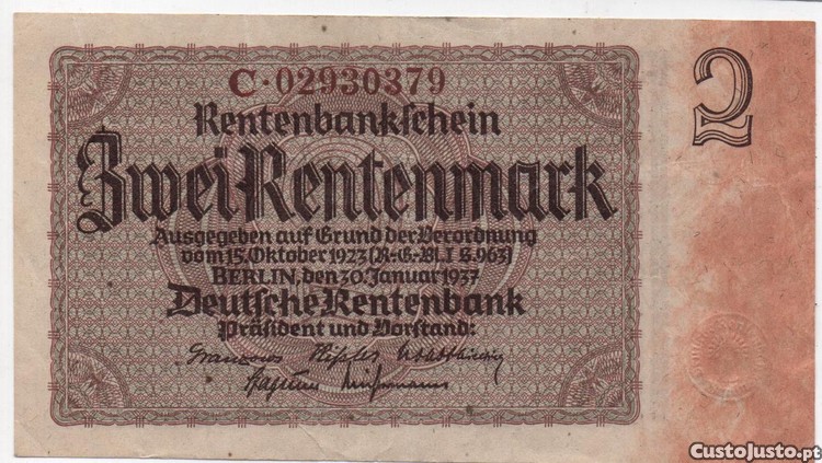 Alemanha (3º Reich) - Nota de 2 Rentenmark 1937 - mbc/mbc+