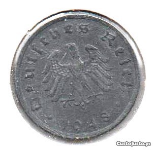 Moeda com ligeiro desgaste uniforme, emitida durante a ocupação aliada da Alemanha, de 1945 a 1948.