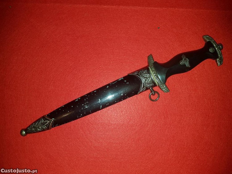 As marcas que apresenta são de manuseamento e idade sendo que apenas a bainha de guarda está com marcas , a adaga está praticamente sem marcas .