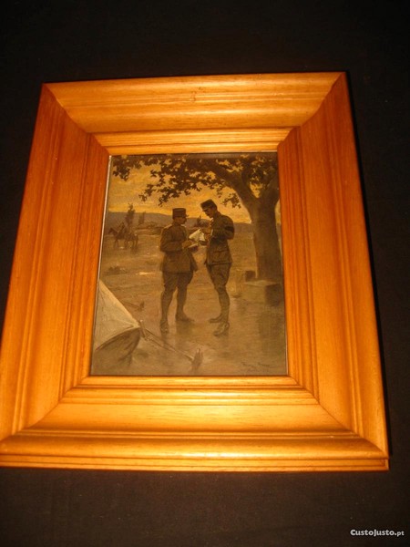 Antigo litogravura militar soldados franceses c/ moldura