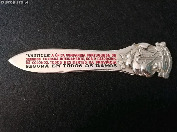 Preço: 20 €Antigo abre cartas em metal com a gravação Nauticus a única companhia portuguesa de seguros
