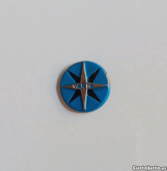 Antigo alfinete de lapela com a publicidade da companhia Aérea VARIG.