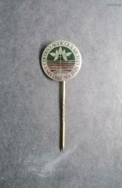 Antigo alfinete de lapela do banco, Caixa de Crédito Agrícola Mútuo * Uma Raiz no País, sendo um exemplar em metal.