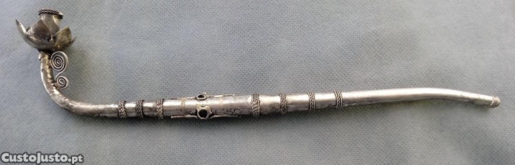 Antigo cachimbo de ópio em prata berbere . Com 21 cm de comprimento . Inclui portes em corrio registado .
