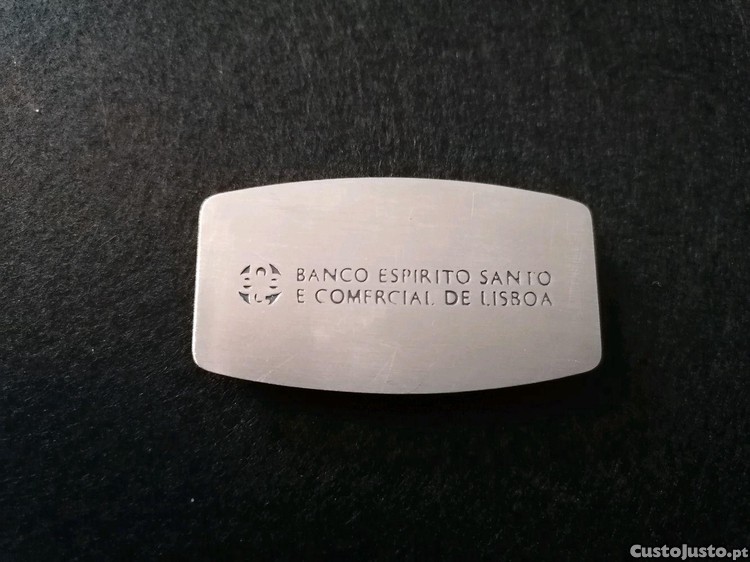 Preço: 15 €Antigo clip em metal para notas com a gravação do símbolo BESCL e Banco Espírito Santo e Comercial