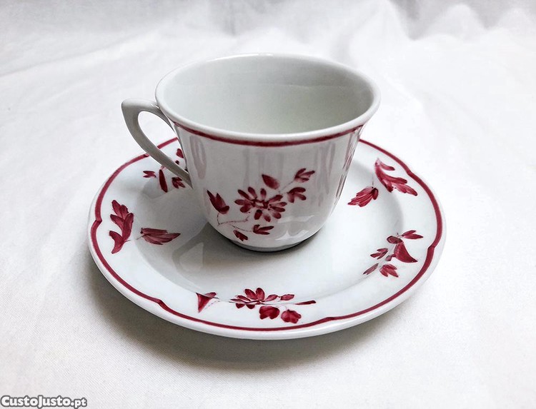 Antigo Conjunto Chávena e Pires Porcelana Floral Francesa Longchamp