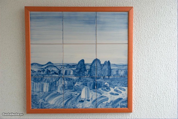 Obra pintada a mão em azul antigo e cozido a 1200Graus