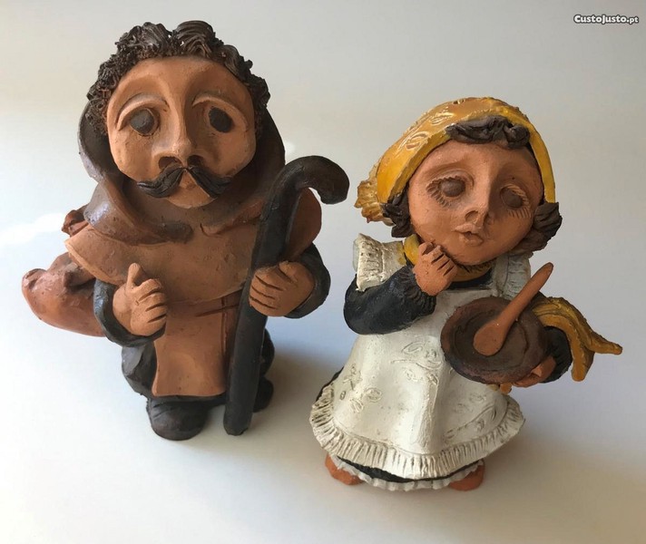 Vendo duas figuras em barro com apontamentos de pintura, anos 80, assinadas de forma legível mas que não conheço... Parece-me que o sobrenome é Filhó.