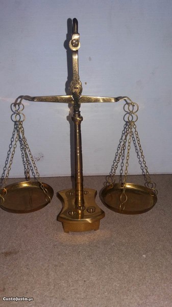 Balança decorativa simples em latão, altura 25 cm, muito bonita.