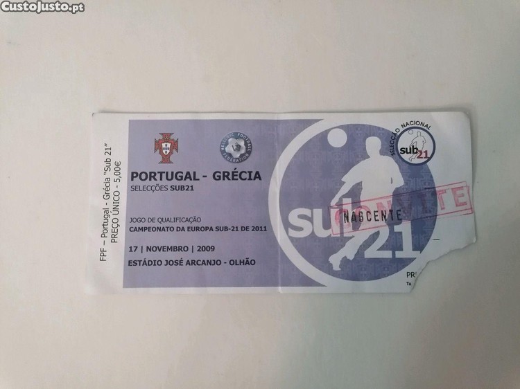 Preço: 15 €Bilhete convite de futebol jogo Portugal - Grécia para a qualificação Campeonato da Europa Sub-21