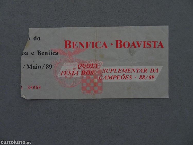 Preço: 4 €Bilhete de futebol Benfica Boavista Festa dos Campeões 88/89