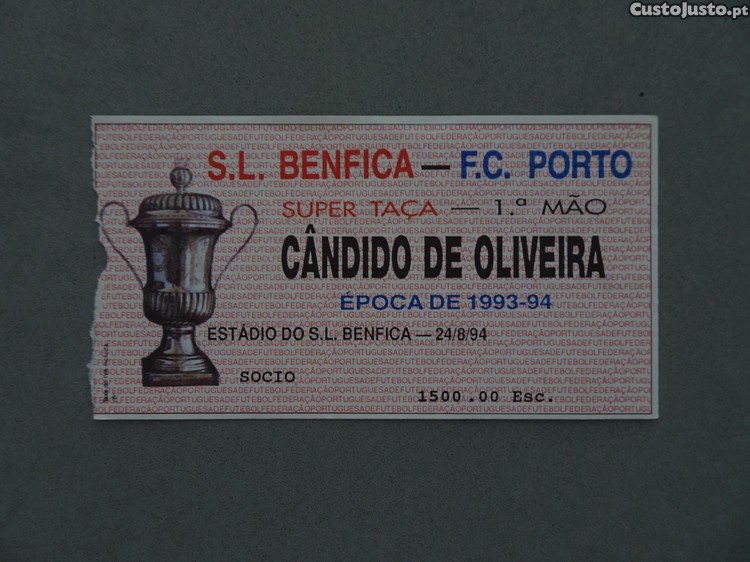 Bilhete de Futebol Benfica Porto Super Taça Cândido de Oliveira 93/94