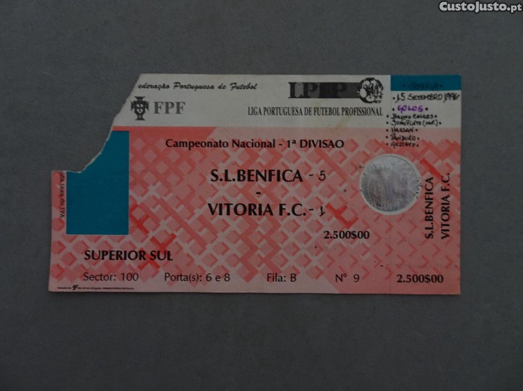Preço: 3 €Bilhete de futebol Benfica Vitória FC Campeonato Nacional 1ª divisão