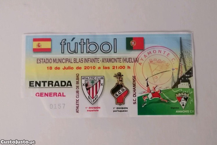 Preço: 10 €Bilhete de futebol jogo Athletic Club de Bilbao - S. C. Olhanense 18 Julho 2010