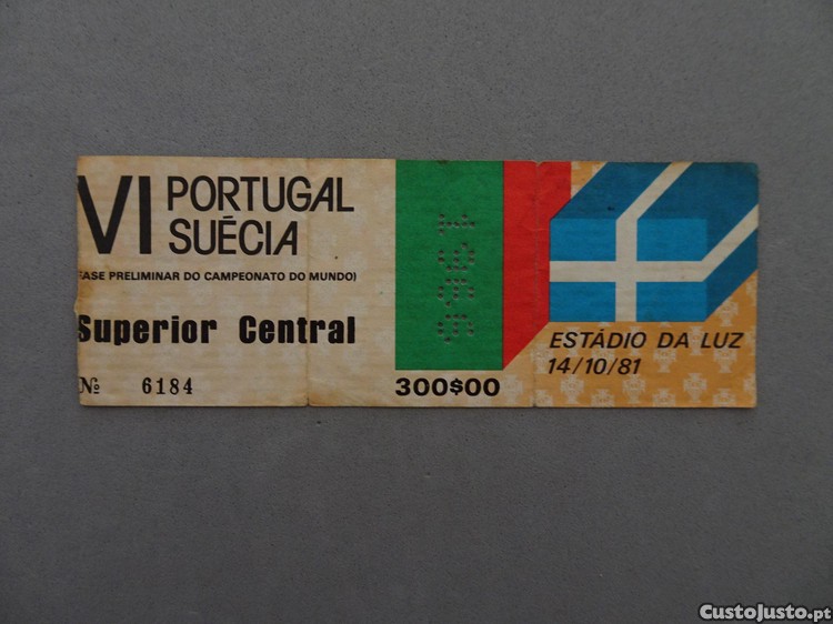Preço: 8 €Bilhete futebol Portugal Suécia Campeonato Mundo 14 outubro 1981