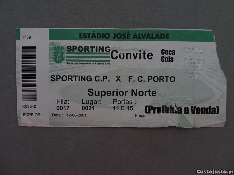 Bilhete futebol Sporting Porto 12 agosto 2001