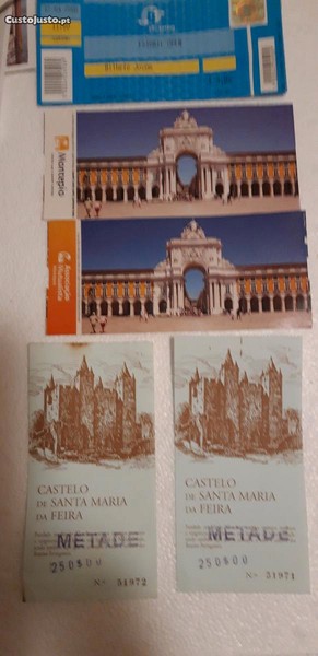 Bilhetes vários coleção cada 4 EUR, entrego em mão, envio pelo correio. Museu do Caramulo Museu Nacional do Teatro, Convento do Bussaco, Castelo de Santa Maria Da Feira, Parque Desportivo do Jamor, Arco da rua Augusta, Funfação Calouste Gulbenkian, Castelo São Jorge, Oceanário.