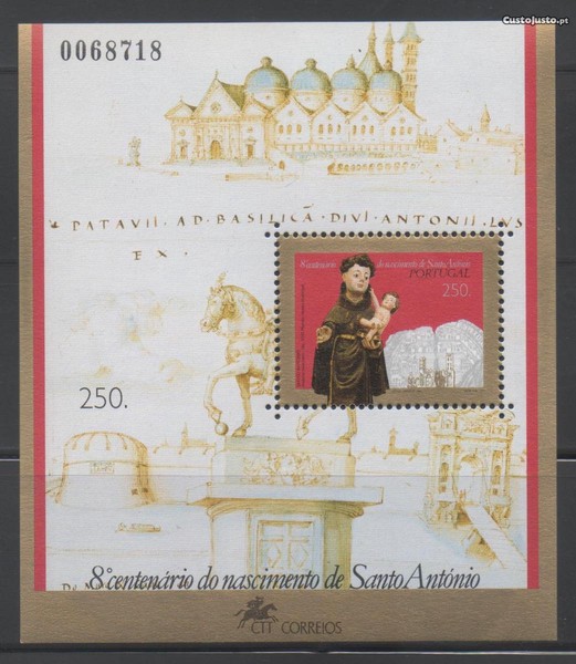 Preço: 8 €Bloco 157. 1995 / 8º Centenário do Nascimento de Santo António. NOVO.