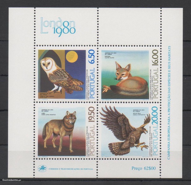 Bloco 32. 1980 / Animais do Zoo de Lisboa. Novo.