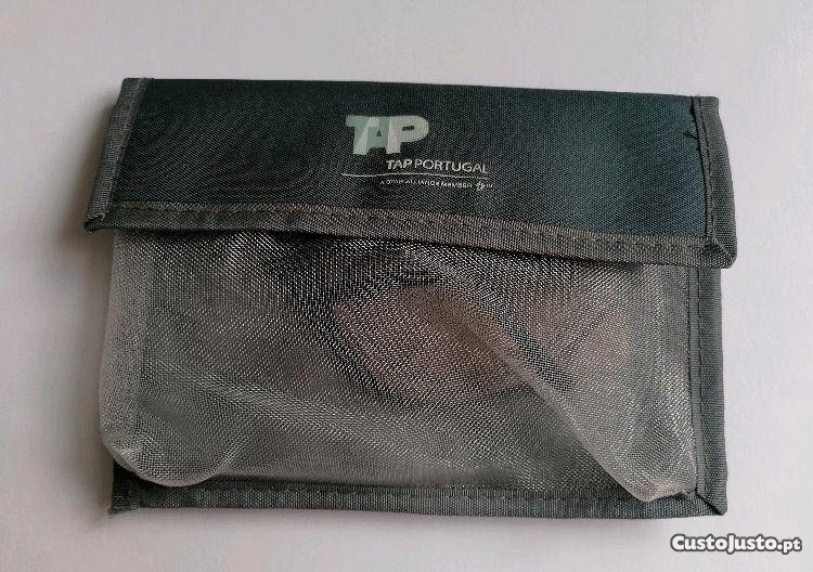 Preço: 10 €Bolsa Necessaire em rede, com bolso de fecho atrás, da Companhia Aérea TAP
