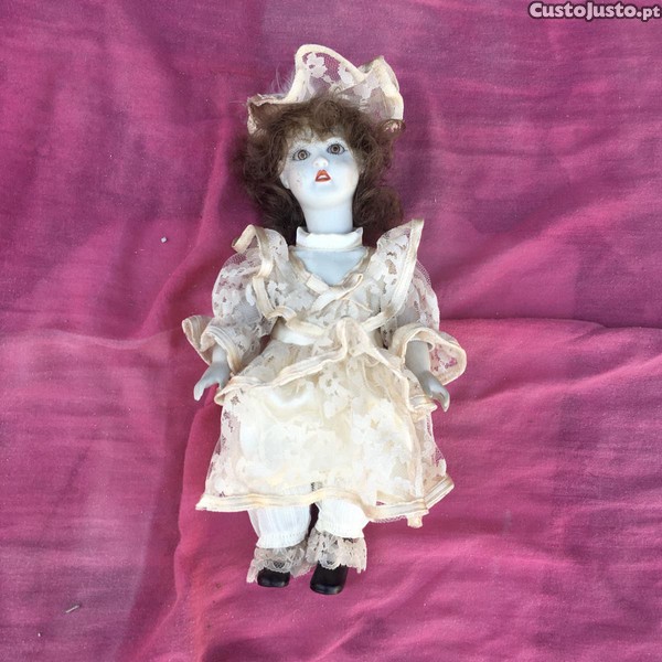 Boneca de porcelana com vestido de origem impecável