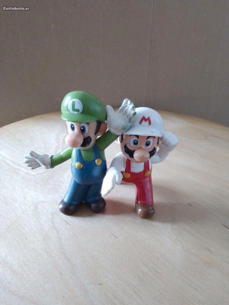 Bonecos da famosa dupla dos vídeo jogos da Nintendo, Mario e Luigi. Foram brindes do conhecido menu infantil da MacDonald, Happy Meal, nos anos de 2013 e 2014. Encontram-se em bom estado. Inicie ou complete as suas colecções. Não vendo em separado, só o par e o preço anunciado diz respeito aos dois. Barato para desocupar. Negociável, vendo pela melhor oferta.