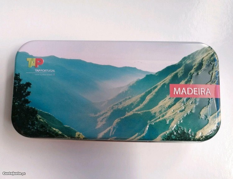 Bonita caixa executiva em metal da companhia aérea portuguesa TAP, com o tema Madeira.