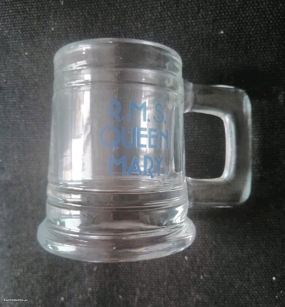 Preço: 5 €Bonita canequinha em vidro com publicidade do navio de cruzeiro R. M. S. Queen Mary