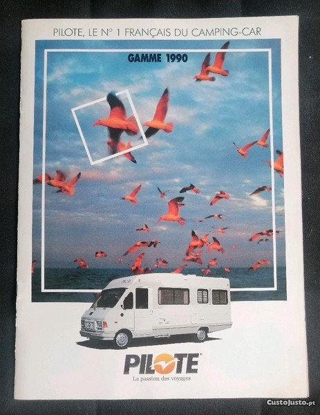 Brochura autocaravanas Pilote gama 1990, exemplar com mais 3 décadas que relembra esta forma vida