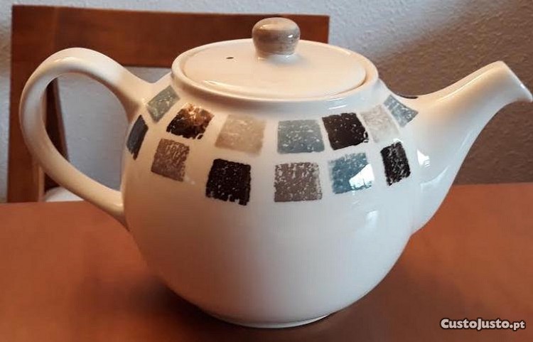 Bule de chá em faiança SECLA, em perfeito estado, pintado à mão, motivo "Clemente"