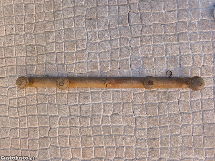 Cabide em madeira de pinho centenário, ao qual falta um dos suportes e apresenta alguns vestígios de xilófagos.